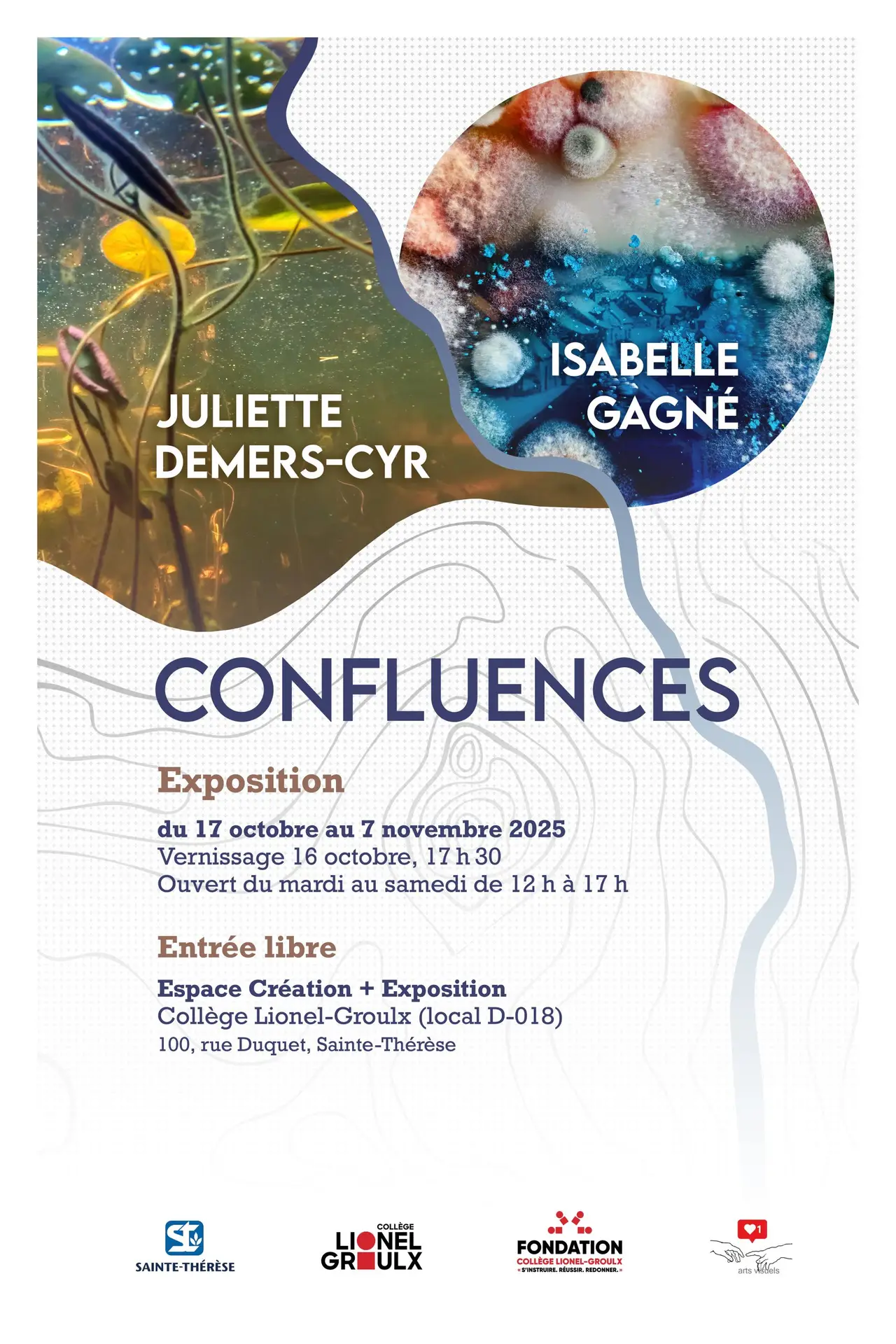 Sainte-Thérèse, le 2 octobre 2025 — Le Collège Lionel-Groulx et la Ville de Sainte-Thérèse sont heureux de présenter l’exposition Confluences, qui réunit les œuvres d’Isabelle Gagné et Juliette Demers-Cyr.