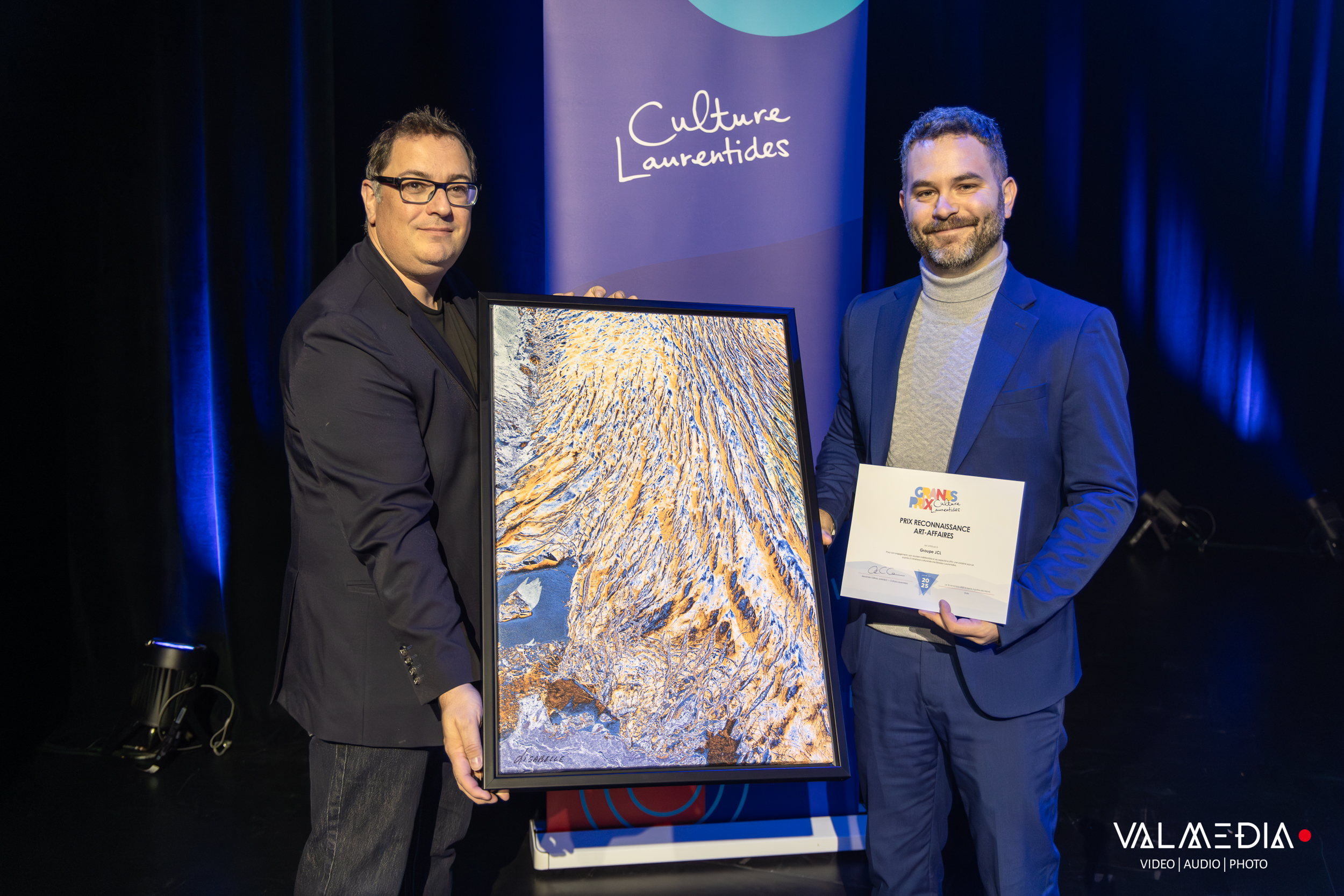 Le prix Reconnaissance Art-Affaires a été attribué par le conseil d’administration de Culture Laurentides au Groupe JCL (Saint-Eustache). Pour son engagement soutenu, son appui indéfectible et sa capacité à offrir une visibilité accrue auprès d’initiatives culturelles des Basses-Laurentides. Le Groupe JCL a reçu une œuvre intitulée