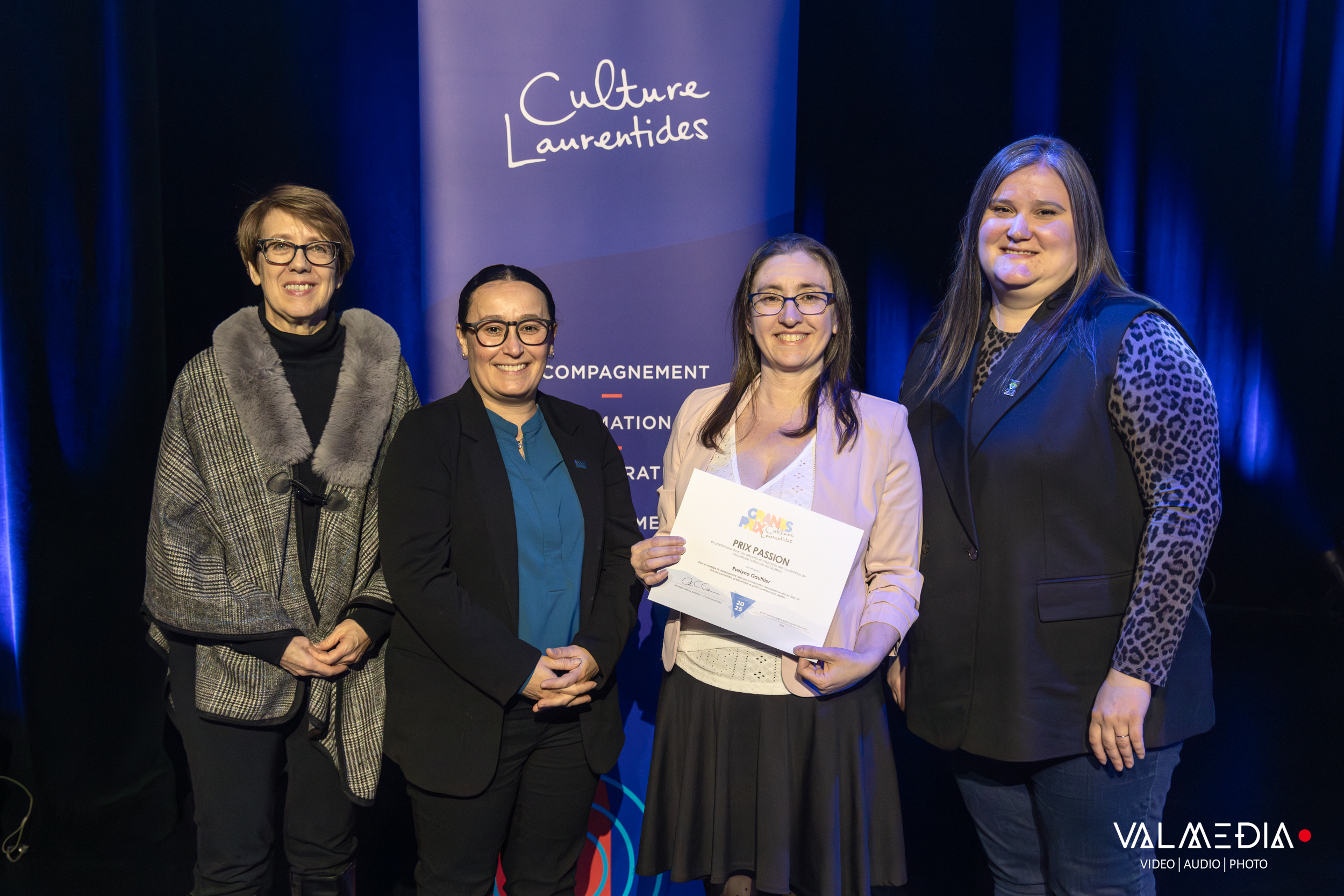 Le prix Passion, remis en partenariat avec les députés et députées des Laurentides de l’Assembée nationale du Québec, a été attribué à Julie Prieur (MRC Laurentides), pour son engagement et sa passion contagieuse qui ont permis l’éclosion d’un événement mobilisateur: le Festival de films d’auteur de Val-Morin, maintenant source de fierté pour la communauté. Pour son souci de mettre en valeur les œuvres et les artistes, créant des opportunités et des retombées pour les arts médiatiques. Ce prix était assorti d’une bourse de 1000 $.