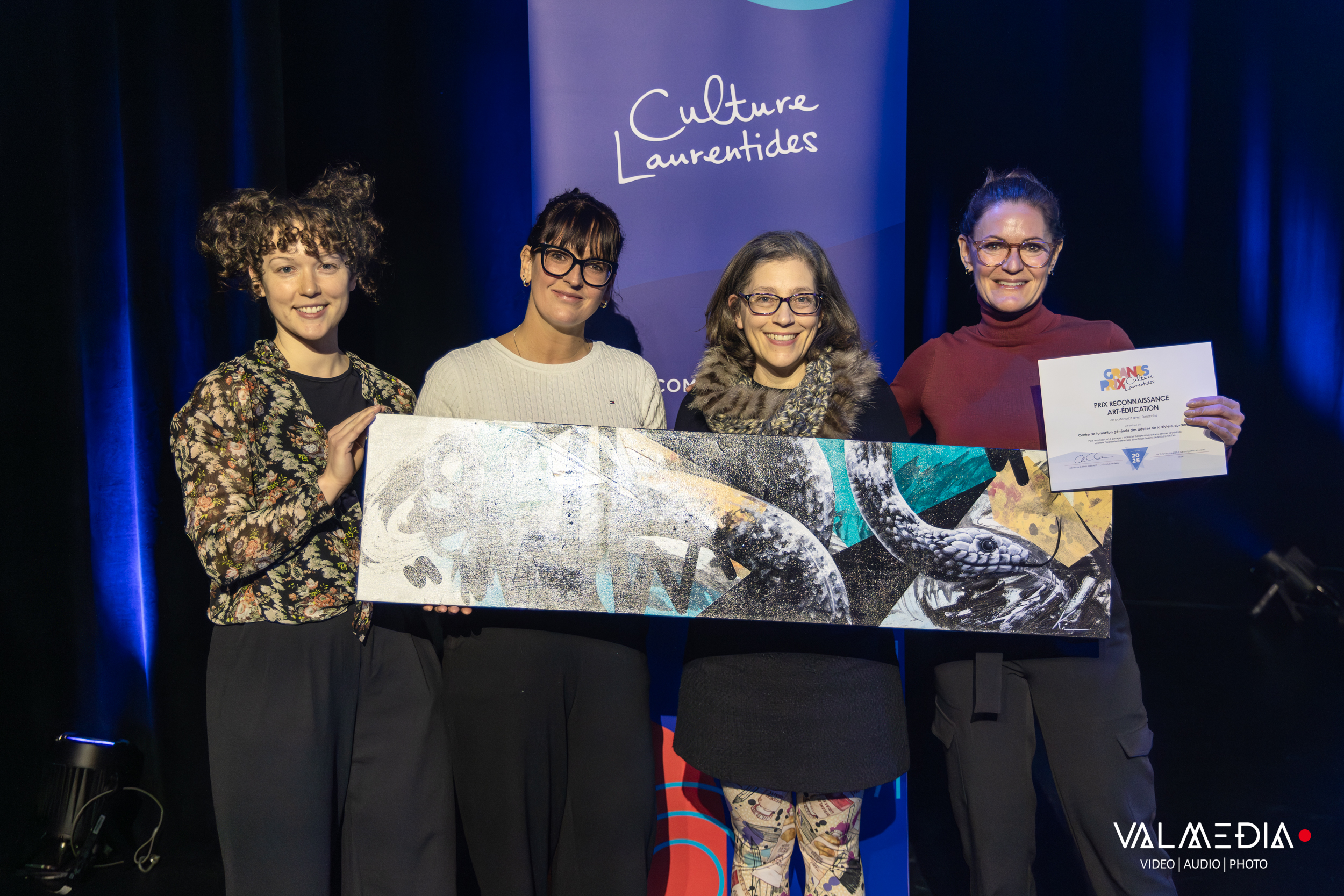 Le prix Reconnaissance Art-Éducation, remis en partenariat avec Desjardins, a été attribué au Centre de formation générale des adultes de la Rivière-du-Nord (Saint-Jérôme) pour un projet art-à-partager inclusif et thérapeutique qui a su stimuler la créativité, valoriser l’expression personnelle et renforcer l’estime de soi à travers l’art. Le Centre de formation a reçu une œuvre intitulée Pulsion de l’artiste Karine Chartrand.