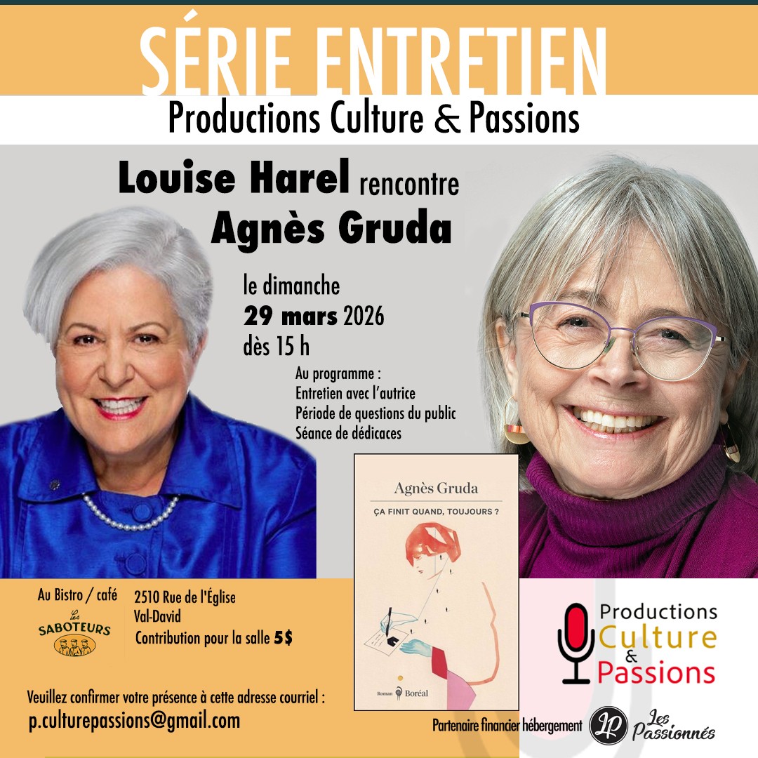29mar15h000h00Productions Culture & Passions - Série entretien : Louise Harel rencontre Agnès GrudaLes Saboteurs - restaurant | caféCatégories:ConférenceMRC:MRC des Laurentides